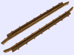 It is a track object: To make railway crossings (diamond junction or diamond crossing) at the same level. Length 3.2m, rail gauge 610mm, with 8 bolts with union screws from the rail to the check rail (model B) every 40cm. Version or finish 3. For straight track and level with the ground. No spikes on the checkrails. Rail crossing designed for rail 30kg per meter, approximately 60.5 pounds per yard, suitable for medium rail. Rail 12 cm high.