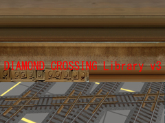 Library of objects track for railroad crossings, version or finish 3. Contains crossings with guard rails in different lengths and for various railroad gauges: (1668mm,1520mm,1435mm,1067mm,1000mm,914mm,762mm and 610mm).