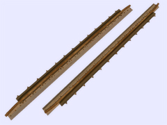 It is a track object: To make railway crossings (diamond junction or diamond crossing) at the same level. Length 5m, rail gauge 1067mm, with 13 bolts with union screws from the rail to the check rail (model B) every 40cm. Non-symmetric check rails at 45º. Version or finish 3. For straight track and level with the ground. Rail crossing designed for UIC rail 60kg per meter, approximately 121 pounds per yard, not suitable for light rail. Rail 16 cm high