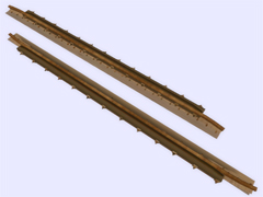 It is a track object: To make railway crossings (diamond junction or diamond crossing) at the same level. Length 5m, rail gauge 1000mm, with 13 bolts with union screws from the rail to the check rail (model B) every 40cm. Non-symmetric check rails at 45º. Version or finish 3. For straight track and level with the ground. Rail crossing designed for UIC rail 60kg per meter, approximately 121 pounds per yard, not suitable for light rail. Rail 16 cm high. New version with the addition of the ''follow-gradient 1'' tag, to adapt to the inclinations of the railway track.