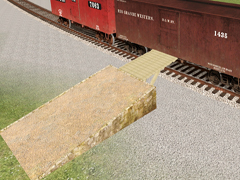 Small ramp or loading dock for freight wagons, 8x4m, with one part made of stone and earth and the other made of wood. It is a scenic and decorative object. It is not functional or interactive.