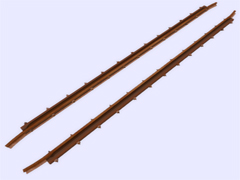 It is a track object: To make railway crossings (diamond junction or diamond crossing) at the same level. Length 5m, rail gauge 762mm, with 13 bolts with union screws from the rail to the check rail (model B) every 40cm. Version or finish 1. For straight track and level with the ground. No spikes on the checkrails. Rail crossing designed for rail 19.8 kg per meter, approximately 40 pounds per yard, suitable for light rails. Rail 10 cm high. New version with the addition of the ''follow-gradient 1'' tag, to adapt to the inclinations of the railway track.