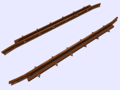It is a track object: To make railway crossings (diamond junction or diamond crossing) at the same level. Length 2.4m, rail gauge 914mm, with 6 bolts with union screws from the rail to the check rail (model B) every 40cm. Version or finish 1. For straight track and level with the ground. No spikes on the checkrails. Rail crossing designed for rail 19.8 kg per meter, approximately 40 pounds per yard, suitable for light rails. Rail 10 cm high. New version with the addition of the ''follow-gradient 1'' tag, to adapt to the inclinations of the railway track.
