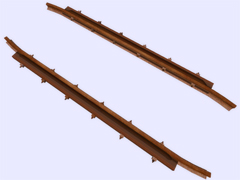 It is a track object: To make railway crossings (diamond junction or diamond crossing) at the same level. Length 2.4m, rail gauge 1067mm, with 6 bolts with union screws from the rail to the check rail (model B) every 40cm. Version or finish 1. For straight track and level with the ground. No spikes on the checkrails. Rail crossing designed for rail 19.8 kg per meter, approximately 40 pounds per yard, suitable for light rails. Rail 10 cm high. New version with the addition of the ''follow-gradient 1'' tag, to adapt to the inclinations of the railway track.