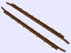 It is a track object: To make railway crossings (diamond junction or diamond crossing) at the same level. Length 3.2m, rail gauge 610mm, with 8 bolts with union screws from the rail to the check rail (model B) every 40cm. Version or finish 2. For straight track and level with the ground. No spikes on the checkrails. Rail crossing designed for rail 19.8 kg per meter, approximately 40 pounds per yard, suitable for light rails. Rail 10 cm high.