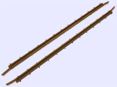 It is a track object: To make railway crossings (diamond junction or diamond crossing) at the same level. Length 5m, rail gauge 610mm, with 13 bolts with union screws from the rail to the check rail (model B) every 40cm. Version or finish 3. For straight track and level with the ground. No spikes on the checkrails. Rail crossing designed for rail 19.8 kg per meter, approximately 40 pounds per yard, suitable for light rails. Rail 10 cm high. New version with the addition of the ''follow-gradient 1'' tag, to adapt to the inclinations of the railway track.