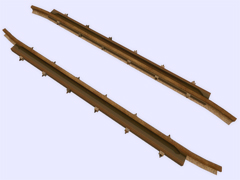 It is a track object: To make railway crossings (diamond junction or diamond crossing) at the same level. Length 2.4m, rail gauge 762mm, with 6 bolts with union screws from the rail to the check rail (model B) every 40cm. Version or finish 3. For straight track and level with the ground. No spikes on the checkrails. Rail crossing designed for rail 19.8 kg per meter, approximately 40 pounds per yard, suitable for light rails. Rail 10 cm high. New version with the addition of the ''follow-gradient 1'' tag, to adapt to the inclinations of the railway track.
