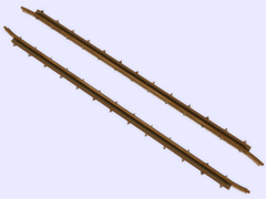 It is a track object: To make railway crossings (diamond junction or diamond crossing) at the same level. Length 5m, rail gauge 762mm, with 13 bolts with union screws from the rail to the check rail (model B) every 40cm. Version or finish 3. For straight track and level with the ground. No spikes on the checkrails. Rail crossing designed for rail 19.8 kg per meter, approximately 40 pounds per yard, suitable for light rails. Rail 10 cm high. New version with the addition of the ''follow-gradient 1'' tag, to adapt to the inclinations of the railway track.