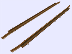 It is a track object: To make railway crossings (diamond junction or diamond crossing) at the same level. Length 3.2m, rail gauge 914mm, with 8 bolts with union screws from the rail to the check rail (model B) every 40cm. Version or finish 3. For straight track and level with the ground. No spikes on the checkrails. Rail crossing designed for rail 19.8 kg per meter, approximately 40 pounds per yard, suitable for light rails. Rail 10 cm high.