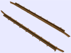 It is a track object: To make railway crossings (diamond junction or diamond crossing) at the same level. Length 3.2m, rail gauge 1000mm, with 8 bolts with union screws from the rail to the check rail (model B) every 40cm. Version or finish 3. For straight track and level with the ground. No spikes on the checkrails. Rail crossing designed for rail 19.8 kg per meter, approximately 40 pounds per yard, suitable for light rails. Rail 10 cm high. New version with the addition of the ''follow-gradient 1'' tag, to adapt to the inclinations of the railway track.