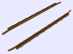 It is a track object: To make railway crossings (diamond junction or diamond crossing) at the same level. Length 3.2m, rail gauge 1067mm, with 8 bolts with union screws from the rail to the check rail (model B) every 40cm. Version or finish 3. For straight track and level with the ground. No spikes on the checkrails. Rail crossing designed for rail 19.8 kg per meter, approximately 40 pounds per yard, suitable for light rails. Rail 10 cm high. New version with the addition of the ''follow-gradient 1'' tag, to adapt to the inclinations of the railway track.