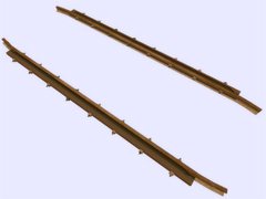 It is a track object: To make railway crossings (diamond junction or diamond crossing) at the same level. Length 3.2m, rail gauge 1435mm, with 8 bolts with union screws from the rail to the check rail (model B) every 40cm. Version or finish 3. For straight track and level with the ground. No spikes on the checkrails. Rail crossing designed for rail 19.8 kg per meter, approximately 40 pounds per yard, suitable for light rails. Rail 10 cm high. New version with the addition of the ''follow-gradient 1'' tag, to adapt to the inclinations of the railway track.