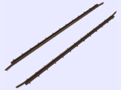 It is a track object: To make railway crossings (diamond junction or diamond crossing) at the same level. Length 5m, rail gauge 1067mm, with 13 bolts with union screws from the rail to the check rail (model B) every 40cm. Version or finish 4. For straight track and level with the ground. No spikes on the checkrails. Rail crossing designed for rail 19.8 kg per meter, approximately 40 pounds per yard, suitable for light rails. Rail 10 cm high. New version with the addition of the ''follow-gradient 1'' tag, to adapt to the inclinations of the railway track.