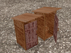 Outhouse, in the style of the old west, for personal hygiene in a group of 2. It is part of the grain elevator complex. Version 2. In this version the wood textures are reddish-brown