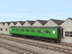 An enginespec for a Maunsell Restriction 4 coach with plain bearing bogies, also suitable for any other bogie coach of similar dimensions and weight. Uses real world values for surface area, moving friction coefficient and air drag coefficient. Braking values set to emulate vacuum brake performance.