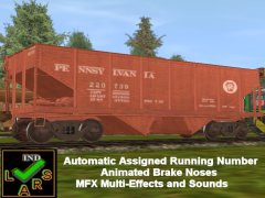 New lettering. Accommodates CMTMSystem3 car destination system. 55 ton USRA/ARA 2bay hopper. 25,000 built in 1918 alone used mostly by eastern and midwestern coal carriers. Model by Dale Pattee. Most of these hoppers were built by American Car & Foundary. Automatic Assigned Running Numbers with animated brake hoses, and MFX multi-effect with sounds. Thanks to Eldavo and Wulf_9 for their signification contributions, and other dependencies by llj, prjindigo, whitepass and winnaa. Modified mesh and reskinned by majekear.