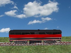 A representation of an Alco FB unit to go with the Auran FA. It is not an accurate model but I hope conveys the impression of a B unit when used behind a FA unit. It is derived from the original Auran FA model on the CD. As my reskinning abilities are very poor at the moment, I have just applied a modified version of the Paintshed basic FA skin. Please feel free to produce and upload useable reskins but only to the DLS.