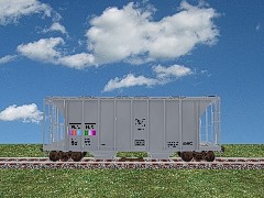 Accommodates CMTMSystem3 car destination system. Chicken Neck Foundry presents an animated 8 top hatch 2-Bay closed in side Covered Hopper with automatic assigned running numbers (thanks eldavo) and animated air brake hoses (thanks Wulf_9). The 8 top hatches open and close with load and unload sounds and dust flying at facilities like woodchips and interactive industries. Dust bellows from under the bays as the hopperunloads. Thanks bsnteng for fantastic assistance in editing hopper.gs script for automatic running numbers, brake air hoses, and couplers, and also thanks to Pencil42 aka Chris for fantastic assistance in editing previous hopper.gs script for the dust clouds at loading docks. . Thanks to Fitz505 for his prior assistance on hatch animation. Car has brake cylinders and couplers (thanks prjindigo) too. See more action and dust clouds loading at Auran industries. Created from the rails up with gmax Trainz Asset Creation Studio. Loads LARS and Auran products: barley, cement, corn, flour, grain hp, lose gravel, hops, limestone aggregate, malt, oats, peas, plaster, granular plastic, quartz sand, rice, sand, sand and gravel, soda ash, soya beans, sugar, taconite pellets, wheat, or woodchips. Employees cloakedghost275 bogies.
