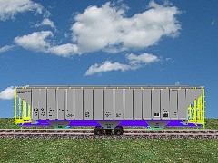 (with Animated unloading). Provided with ARN. Pullman Standard’s 4750 cubic foot covered hopper was one of the most successful freight car designs in that company’s history. Over 54,000 of these cars were produced during the latter part of the 1970s and early 1980s. It was the premier grain hauler of the era and is still in use.