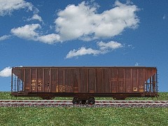(with Animated unloading). Provided with ARN. Pullman Standard’s 4750 cubic foot covered hopper was one of the most successful freight car designs in that company’s history. Over 54,000 of these cars were produced during the latter part of the 1970s and early 1980s. It was the premier grain hauler of the era and is still in use.