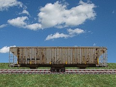 (with Animated unloading). Provided with ARN. Pullman Standard’s 4750 cubic foot covered hopper was one of the most successful freight car designs in that company’s history. Over 54,000 of these cars were produced during the latter part of the 1970s and early 1980s. It was the premier grain hauler of the era and is still in use.