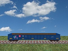 REVISED: Modified to accommodate CMTMSystem3 car destination system. Fixed load. This Rock Island 48ft 14 panel mill gondola was created with Gmax, Blender and Jasc Paint Shop Pro. Employees random assigned running number, animated air brake hoses,animated product loading and unloading, and Multi-effects library for sounds and smoke and dust colors. Many thanks to the creators of the dependency items. More thanks to bsnteng for modification of the script file.