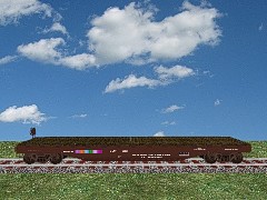 Accommodates CMTMSystem3 car destination system. Chicken Neck Foundry presents a 50ft fishbelly flatcar. NumberIt automatic assigned running numbers by Eldavo. Use ? in Surveryor to change assigned running number too. Also has animated brake air hoses with sound. Improved couplers too. Select products from Caterpillar equipment, several farm tractors and more. Auran Industry and Lars and ProtoLARS industry track interactive flatcar with Auran's General Goods, (2) Lumber, (2) 20ft and (1) 40ft Containers. LARS product loads 2 of transformer, skid steer loader (front-end loader), farm equipment, plastic pipe load, John Deere and Ford Tractors, Massey Harris 30 and 44 Tractors, Massey-Ferguson (front end loader), or lumber. Load 8 of Kabeholle quer 2m Durchm (Cable Roll/Spool), Wire Coil, or general goods crates. Created from the rails up with gmax Trainz Asset Creation Studio and Jasc Paint Shop Pro. Many thanks to Eldavo for creation and assistance in operation his NumberIt system. Many thanks to Dale Pattee for script editing.