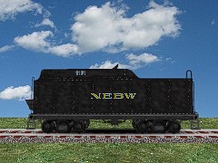 This is a re-skin of the original tender by Ben Neal. The original author retains all copyrights to the meshes and textures used in this item. My thanks to Ben for his truly great locomotive tender