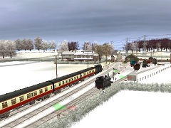 Not so long back I uploaded a scenic test bed used for evaluating ideas for my much larger and more complex 'Kirkby in Ashfield' route. I decided while in the middle of a cold snap to revisit this route and drop some snow on it so as to give an impression of a line just about to head into Derbyshire from Staffordshire in the winter. As always, its more for shunting than running but set