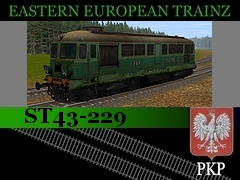 ST43-229 diesel locomotive owned by PKP ZT.Olsztyn. 3d martinST43, textures makaron1970, script RBach. TRS12+. This model was tested in TS19 with fixed light script. Use view details window to control all options of the model including lights, doors and the nightview.