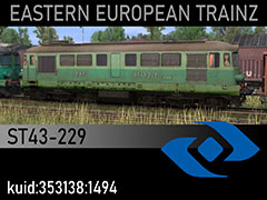 ST43-229 diesel locomotive owned by PKP Cargo, late 2010s state and paintscheme. 3d martinST43 and Qcyk85, photos ryszard, textures pmt, script RBach. TRS12+. This model was tested in TS19 with fixed light script. Use view details window to control all options of the model including lights, doors and the nightview.