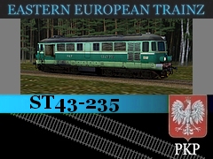 ST43-235 diesel locomotive owned by PKP ZT.Poznan. 3d martinST43, textures makaron1970, script RBach. TRS12+. This model was tested in TS19 with fixed light script. Use view details window to control all options of the model including lights, doors and the nightview.