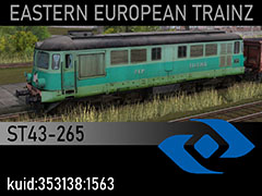 ST43-265 diesel locomotive owned by PKP Cargo, late 2010s state and paintscheme. 3d martinST43 and Qcyk85, photos ryszard, textures pmt, script RBach. TRS12+. This model was tested in TS19 with fixed light script. Use view details window to control all options of the model including lights, doors and the nightview.