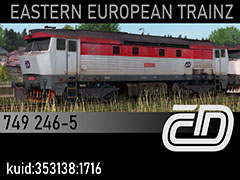 749 246-5 diesel locomotive owned by Czech Railways CD, former 752 011-7 modernised with electric train heating. 3d kilanziom, photos kilanziom, textures makaron1970, script RBach. TRS12+. This model was tested in TS19 with fixed light script. Use view details window to control all options of the model including lights, doors and the nightview.
