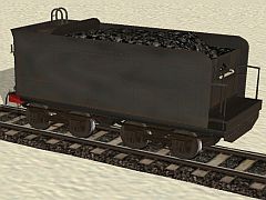 The tender is fitted with NSWGR 'unit drawgear', which is a form of dual screwlink/hook and knuckle coupler. By swinging the coupler on a hinge by 90 degrees, the active coupler type was changed from screwlink/hook to knuckle. These connectors started to appear on locomotives in the 1940s to bridge the phase-out period of hook couplers. The user can change between hook and knuckle couplers using this asset's properties editor in Surveyor and View Details in Driver.