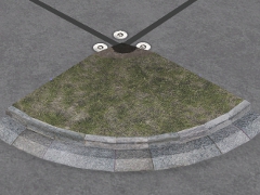 sidewalk corner, grass, stone curb and gutter, 90 deg roll axis |