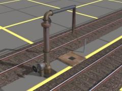 For locos under player control, the player should spot a tender's water port adjacent to the crane's column or at the column-facing edge of the drain grill for a side-tank engine.