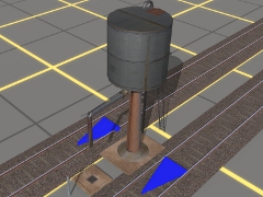 The jib is animated. It will rotate anti-clockwise (track-acw) or clockwise (track-cw) by 90 degrees or 38 degrees depending on whether the loco's water port is centrally located (standard) or on a side tank, respectively. The presence of a side tank port is indicated to the water tank's script by use of a 'yes' value for a 'lsp_side-tank' tag in the 'extensions' container of the vehicle's config file.