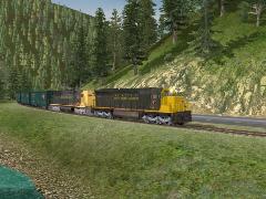 A slide has blocked the Northern Pacific main east of Sandpoint, Idaho, so your train has been rerouted over the Union Pacific through Wallace, Idaho. You'll make a short stop in Mullan before you begin the arduous climb over Lookout Pass on your way to Minneapolis. [Created and tested in SP4 build 102323. F7 locos replaced due to copyright conflict.]