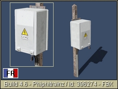 SNCF platic box <STM> (Signalling - Telephony - Multiples) on a concrete post. This box can be used, for example, near a signal. It may contain a relay, bars or fuses, diodes, etc.), in this case it is used to make the connection between the overhead line (telephony) and one or more cables protected by fuses. FBX/PBR Phiphitrainz 2022 3d object made from documents by Georges Pinthon.