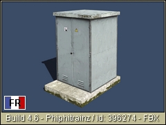 1.40 x 2.45 m SNCF sentry box on concrete slab for electromechanical signaling or level crossing equipment. FBX/PBR Phiphitrainz 2022 3d object made from documents and dimensions by Georges Pinthon.