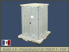 1.40 x 2.48 m SNCF sentry box on concrete slab for electromechanical signaling or level crossing equipment. FBX/PBR Phiphitrainz 2022 3d object made from documents and dimensions by Georges Pinthon.