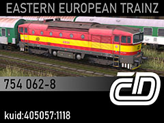 754 062-8 diesel locomotive owned by Czech Railways (CD), early 2010s state and paintscheme. 3d kilanziom, photos kilanziom, textures patryk94, script Rbach. This model was tested in TS19 with fixed light script. Use view details window to control all options of the model including lights, doors and the nightview.