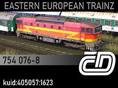 754 076-8 diesel locomotive owned by Czech Railways. For better realism a 750 class cab interior can be attached - kuid:376721:557503, available at at http://www.trainz.cz/download/soucasti-lokomotiv-a-vagonu/interiery-kabiny/1766-interier-pro-750 . 3d kilanziom, photos kilanziom, textures patryk94, script Rbach. TRS12+. This model was tested in TS19 with fixed light script. Use view details window to control all options of the model including lights, doors and the nightview.