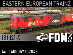 181 121-5 heavy freight electric locomotive owned by FDM Damian Żur. 3d kilanziom, photos kilanziom, textures kilanziom, script RBach. TS12+, for any missing assets visit www.trainzart.pl - tested in TS19 with fixed light script. Use view details window to control all options of the model including lights, doors and pantographs.