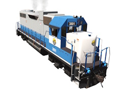 GP38 in lightly weathered Plainsman Switching Company livery. Original by Davesnow, reskinned by Maxwerks.