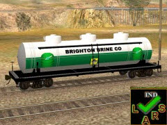 Brighton Brine Co three dome tanker. LARS capable. The skin art is based off an original art work concept for a Mount Olive Pickle Car done by Ray Stevens (aka: wiley4) and with his permission. This car is a re-skin of the high quality UTLX 3 dome tank car done by Ian Manion (Vulcan) and with his permission. My thanks to both authors for their original work! CMTM compatible.