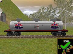 Amoco three dome tankcar for TRS2010 or later. LARS capable. Ray Stevens (aka: wiley4), who is the original author of this car, has generously given me permission to update it to TRS2010 standards and re-release it under my own name. My personal thanks to the original author for this great piece of re-skinned rolling stock! For bogeys this car now uses the much more realistic 70 Ton Roller Bearing Truck from CloakedGhost275 (kuid2:76096:50003:3).