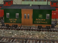 Maine Central Bay Window MoW Caboose W26. With the generous permission of Wayne Cook (AKA gandy-dancer), the original author, I have taken over this item in order to update it to current standards and allow it to continue in Trainz. The original author still retains all copyrights for this great piece of content. CMTM compatible.