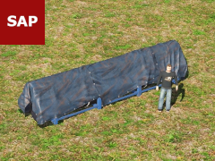 Stacks of metal pipes covered by a tarp. A visible product load for flat cars. Most regular size flat cars should be able to load up to two of these items. Referenced mesh assets use non-parallax PBR textures.